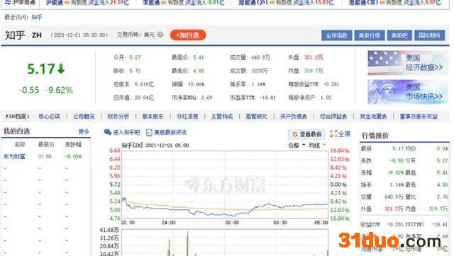 知乎于2021年3月正式在纽约证券交易所挂牌上市,如今过去9个月,知乎的股价已经跌至5美元左右,较9.5美元的发行价下降约50%。