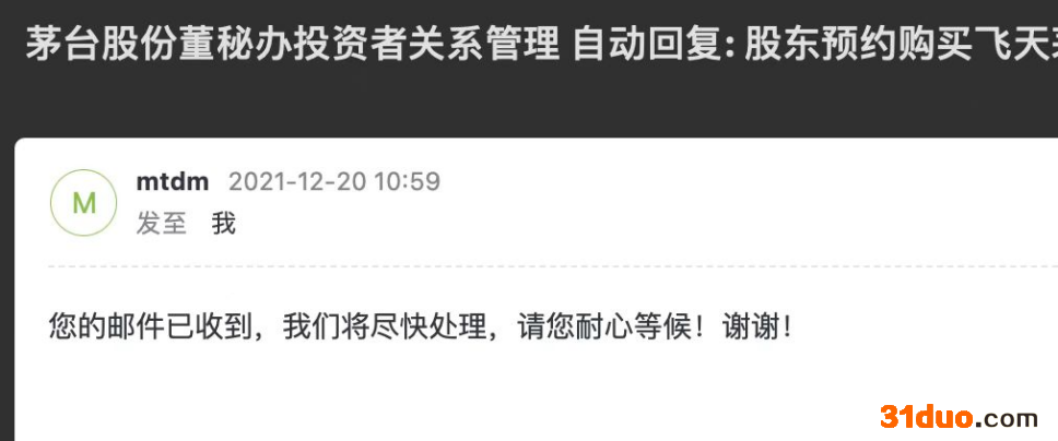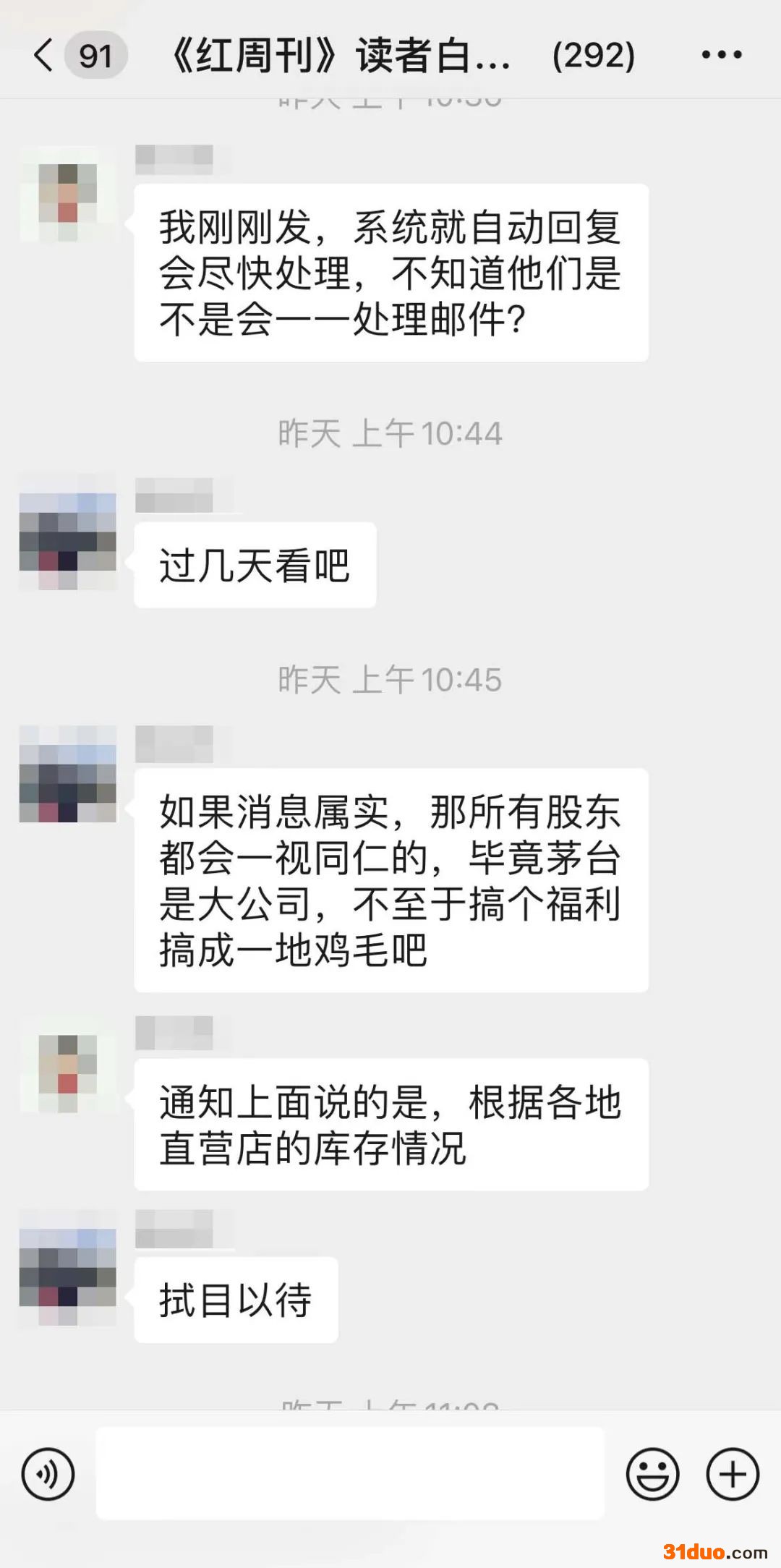 本文发出后,在《红周刊》的读者群也引起了热烈的讨论。有读者反应,给茅台董秘办打电话不通,发了邮件并收到了自动回复,让耐心等候。
