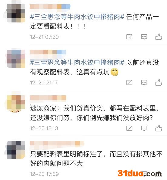 有网友表示,“以前还真没有观察配料表,这真有点坑”“任何产品一定要看配料表”。不过,也有人称,“只要配料表里明确标注了,而且没有掺其他不好的肉,就问题不大”。