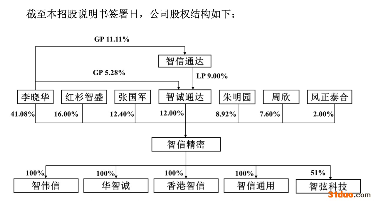 智信精密成立于2012年3月1日,李晓华、张国军、周欣、朱明园四人分别出资170.5万元、165万元、110 万元、104.5万元,合计注册资本550万元。