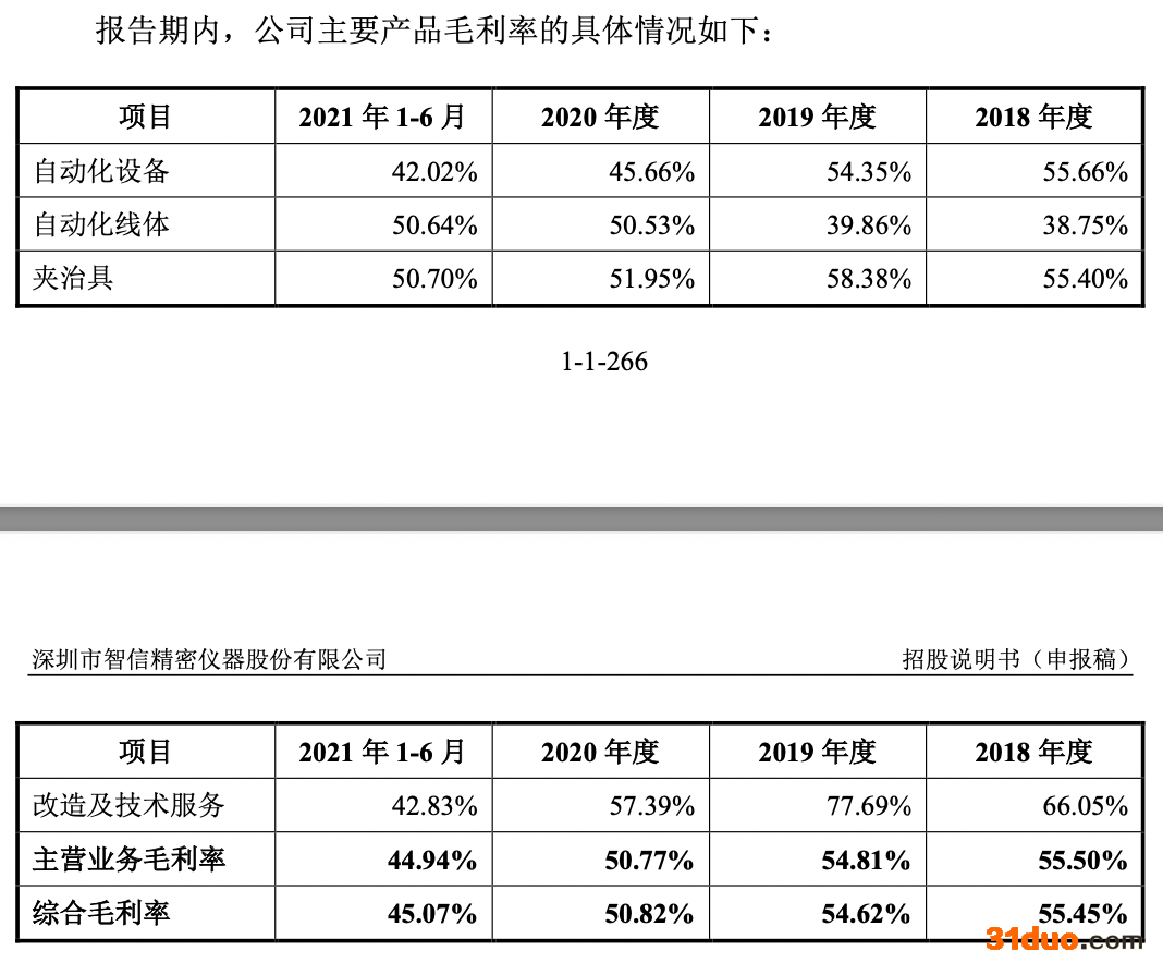 值得注意的是,纵向而言,智信精密自身毛利率却在逐渐下滑,2018年-2021年上半年,公司综合毛利率分别为55.45%、54.62%、50.82%、45.07%。同样兴禾股份也面临毛利率下滑的问题,2018年-2021年上半年综合毛利率分别为51.48%、58.58%、49.65%和39.33%,为此毛利率波动等相关问题也被监管层发问。