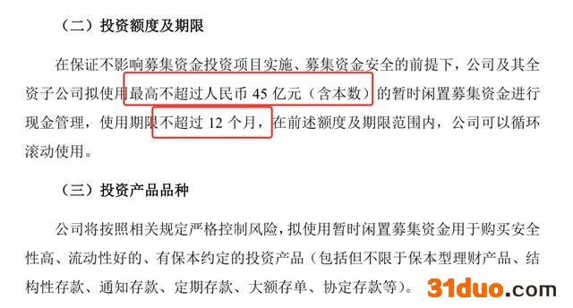 12月20日晚间,禾迈股份(688032)公告称,拟使用最高不超过45亿元的暂时闲置募集资金进行现金管理,用于购买安全性高、流动性好、有保本约定的投资产品,使用期限不超过12个月,在前述额度及期限范围内,公司及其子公司可以循环滚动使用。