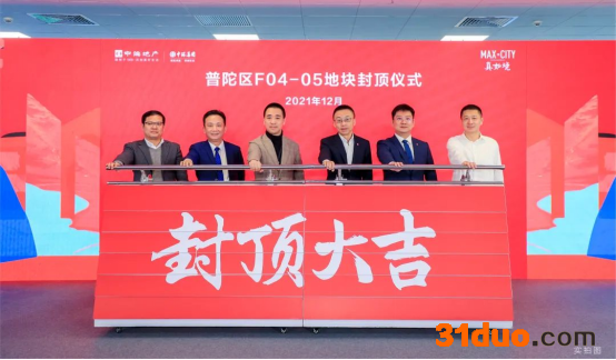 普陀区副区长徐树杰、中海副总裁刘慧明等为真如境首栋超高层启动封顶装置