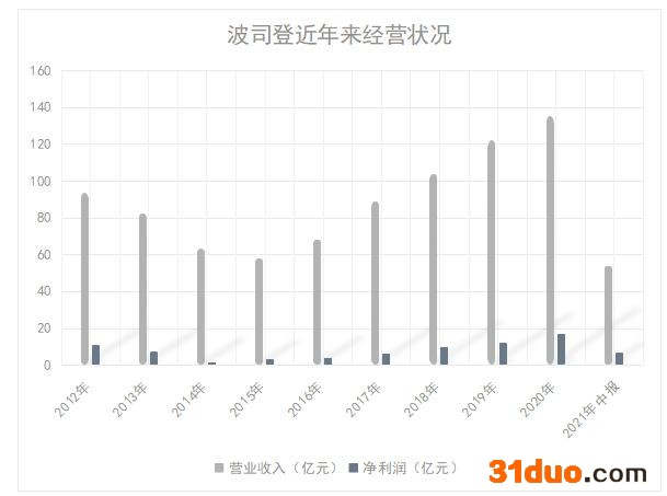 2021年中期业绩显示,截至9月30日,波司登实现营业收入53.9亿元,同比增加15.6%;实现净利润6.39亿元,同比增加31.4%。这是波司登连续4年营收和净利双增。