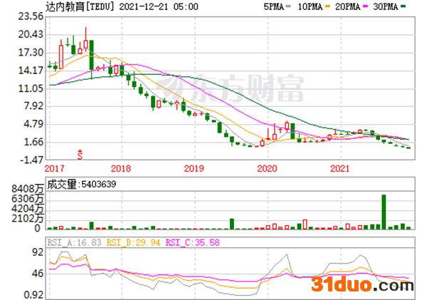 中国网财经12月22日讯(记者 苏萌)“美股中国职业教育第一股”的达内时代科技集团有限公司(TEDU,“达内科技”)在美上市的第七个