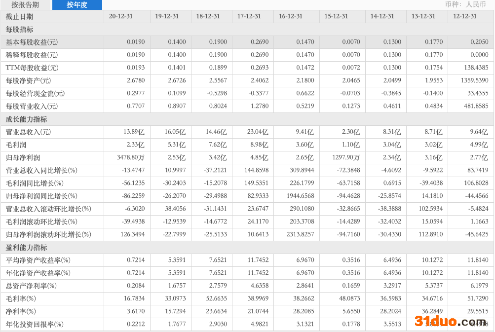 金轮天地2012年-2020年主要财务指标概况,图片来源:东方财富