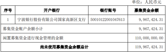 截至2021年11月30日,永新光学尚未使用募集资金余额总计为1.20亿元,其中,募集资金账户余额小计为996.74万元,闲置募集资金进行现金管理的金额为1.10亿元。