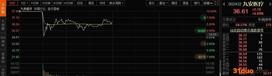 九安医疗分时走势