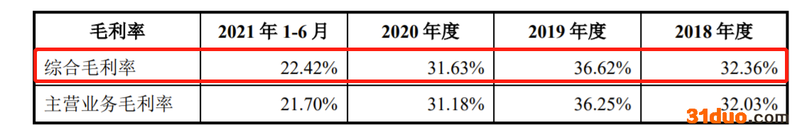 报告期内,戈尔德综合毛利率分别为32.36%、36.62%、31.63%及22.42%。2019年起毛利率呈现逐年下降趋势。