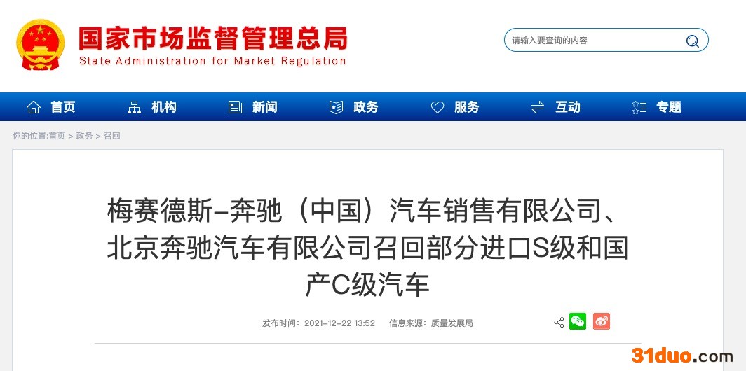 中华网财经12月22日讯,日前,梅赛德斯-奔驰(中国)汽车销售有限公司和北京奔驰汽车有限公司根据《缺陷汽车产品召回管理条例》和《缺陷汽车产品召回管理条例实施办法》的要求,向国家市场监督管理总局备案了召回计划,自即日起,召回共计2307辆汽车。