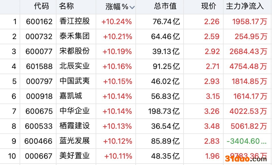 图:房地产开发板块部分涨停股(来源:同花顺)