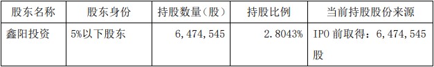 本次减持计划实施前,鑫阳投资持有嘉元科技股份647.45万股,占公司股份总数的2.8043%。