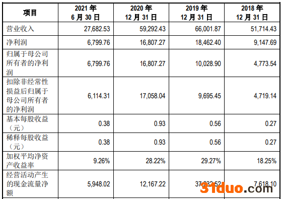 今年前三季度,公司净利润继续下降。2021年1-9月,亨迪药业营业收入为4.18亿元,同比减少1.00%;净利润为9935.23万元,同比下降23.30%;经营活动产生的现金流量净额为7548.10万元,同比下降6.65%。