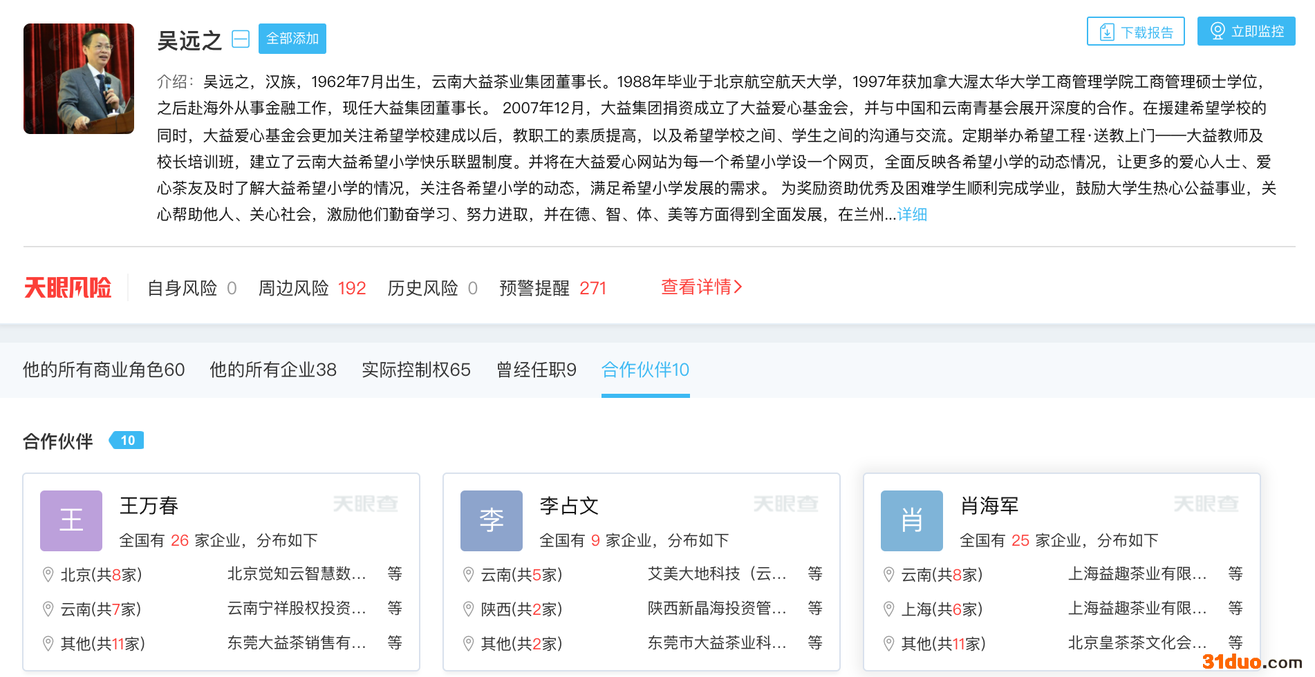天眼查显示,吴远之持股大益集团90%。此外,他还担任云南大益微生物技术有限公司、西双版纳大益茶茶禅世界开发建设有限公司等23家公司的法定代表人,拥有65家公司的实际控制权。