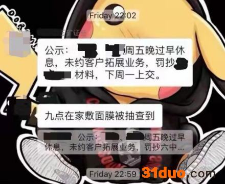据网友爆料,五矿证券员工因周五晚过早休息,未约客户拓展业务,被罚抄材料,并称,“晚上9点在家敷面膜被抽查到”,耽误了加班。