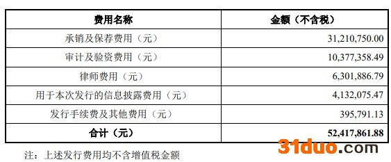 雅艺科技本次发行费用总额为5241.79万元,兴业证券股份有限公司获得承销及保荐费用3121.08万元。