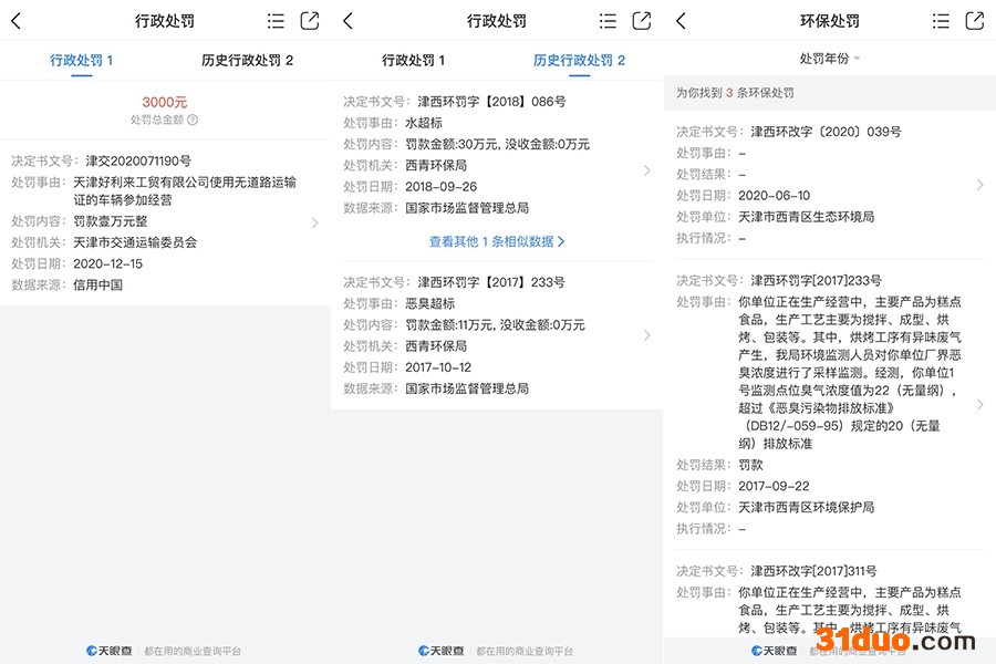 值得注意的是,涉事面包生产企业——天津好利来工贸有限公司近年来已多次因水超标、恶臭超标、违反《天津市大气污染防治条例》等原因被执法单位予以行政处罚/环保处罚,累计罚款金额高达42万元。这不禁令人产生疑问,好利来工厂如此加工环境如何保障食品安全生产?