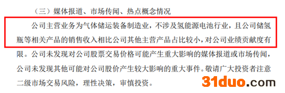 不过在12月22日的公告中公司做了澄清,公司主营业务为气体储运装备制造,不涉及氢能源电池行业,且公司储氢瓶等相关产品的销售收入相比公司其他主营产品占比较小,对公司业绩贡献度有限。因此,目前京城股份还不能与氢燃料电池行业直接挂钩,最多只能算是氢燃料电池概念股。