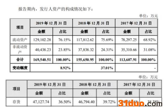 2017年-2019年,正帆科技存货金额分别为3.01亿元、4.68亿元及4.71亿元,占流动资产的比重分别为38.38%、39.72%、36.50%。