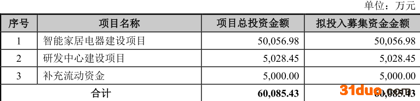 净诺科技原拟公开发行股票数量不超过1042万股,占发行后股本比例不低于25%。净诺科技原拟募集资金6.01亿元,计划分别用于智能家居电器建设项目、研发中心建设项目、补充流动资金。