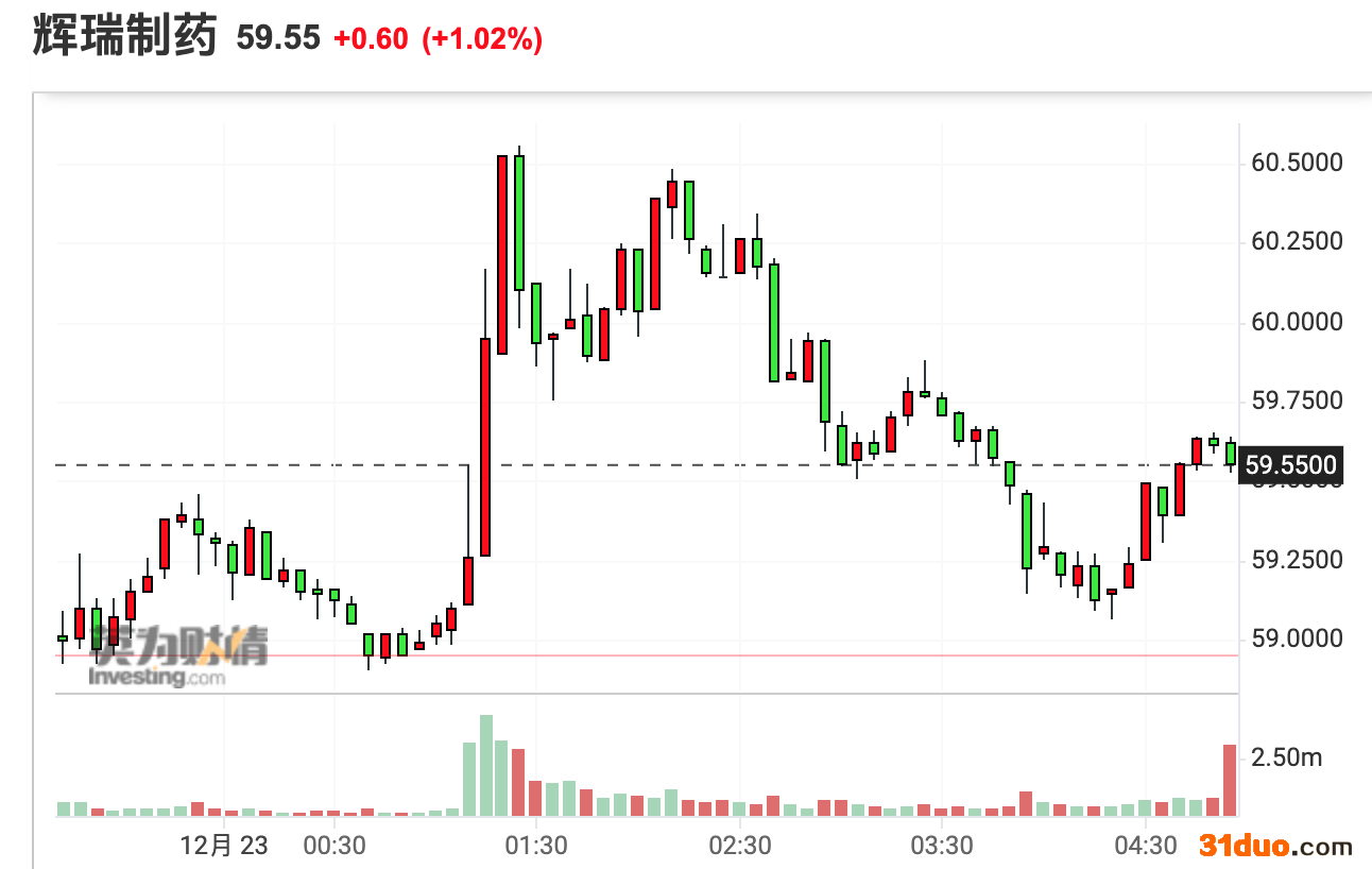 (辉瑞周三收涨约1%,来源:英为财情)