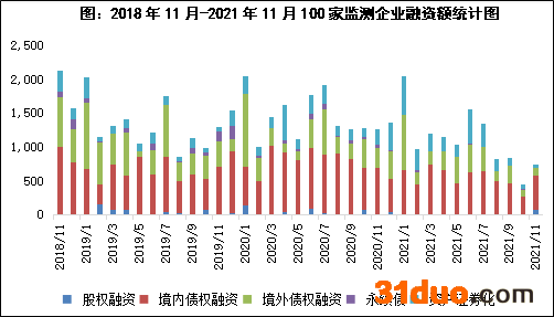 CRIC数据显示,其统计的100家典型房企的11月融资总量为749.63亿元,环比上升65.8%,同比下降40.9%。其中发债总额294.01亿元,环比上升111.4%,同比下降50.3%。尽管融资边际有所好转,但整体来看,企业融资量仍属于低位,同比仍是负增长。