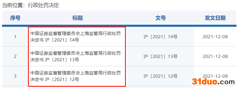 这三份行政处罚决定书的发文日期显示为2021年12月8日。