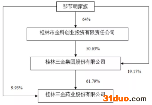 桂林三金与实控人之间的产权及控制关系。图片来源:2020年年报截图