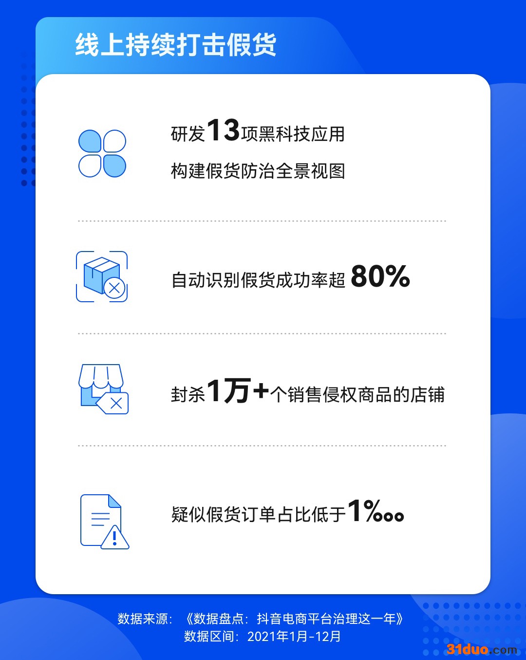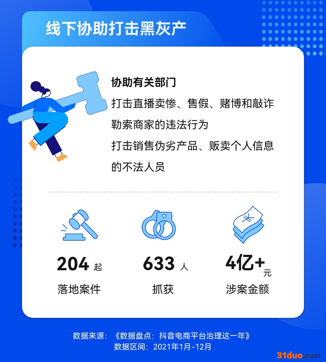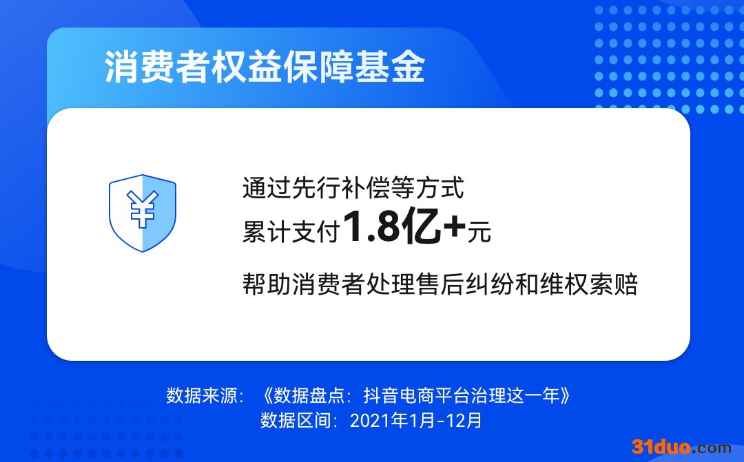 中新经纬12月23日电12月23日,抖音电商发布《平台治理这一年》数据报告(以下简称“报告”),全面盘点了2021年度该平台的治理工作