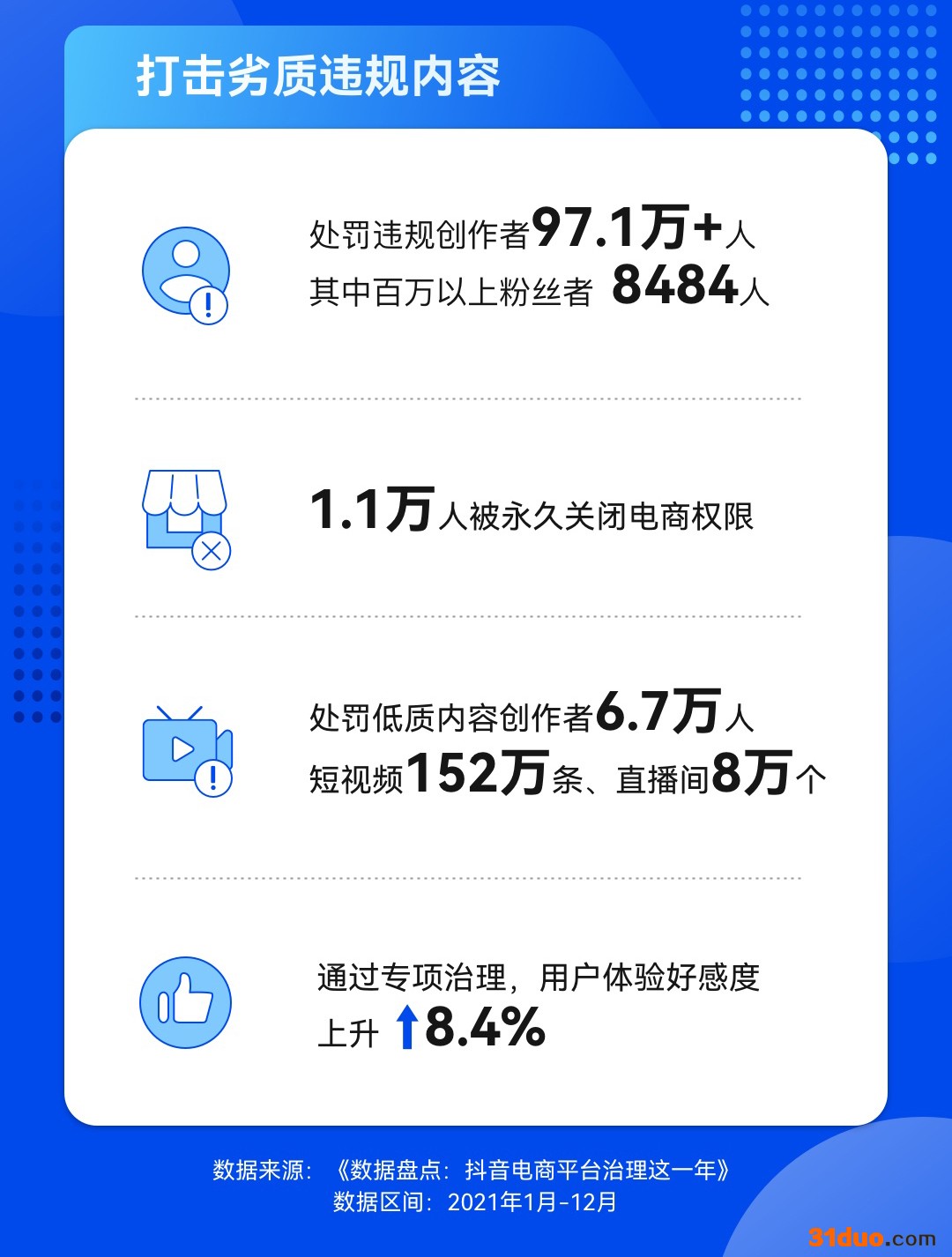 抖音电商2021年处罚超8千名百万粉丝达人,清退4万个严重违规商家