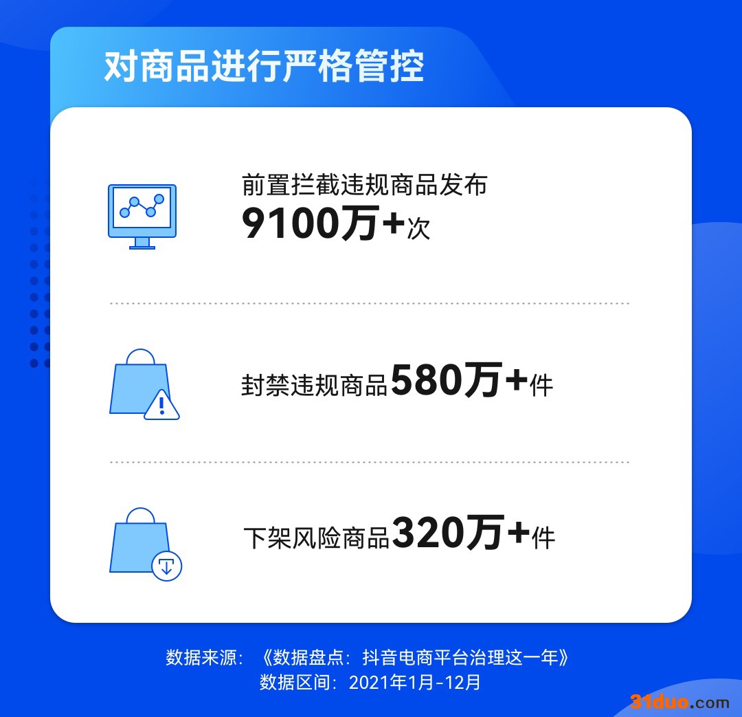 抖音电商相关负责人表示,全面加强对商品的管控,有效降低了平台的商品安全风险。而严厉惩治违规商家的同时,也有效保障了消费者的权益。