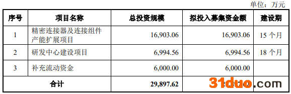此前披露的招股书显示,凯旺科技原拟募资2.99亿元,拟分别用于“精密连接器及连接组件产能扩展项目”、“研发中心建设项目”、“补充流动资金”。