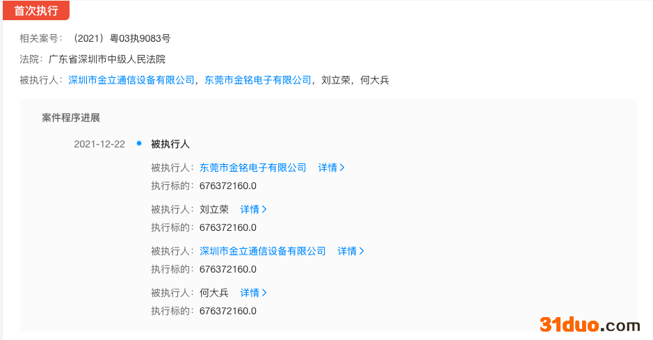 中华网财经12月23日讯,据天眼查显示,金立手机关联公司深圳市金立通信设备有限公司新增一条被执行人信息,执行标的6.76亿余元,执行法院为深圳市中级人民法院,关联案件为金融借款合同纠纷。