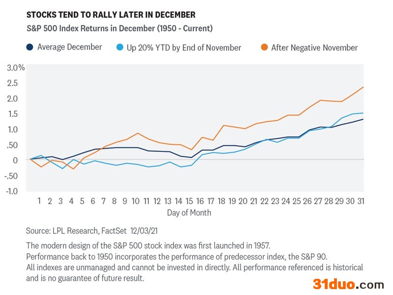 财联社(上海,编辑 潇湘)讯,在美股市场上,12月通常是股市一年中表现最好的月份之一,其中大部分涨幅往往都发生在12月的下半月。