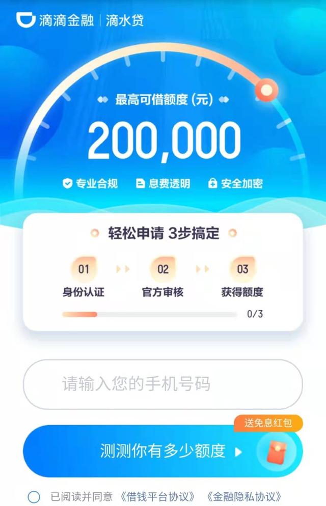 记者点进短信提供的链接后发现,滴滴金融在网页中标注着“专业合规、息费透明、安全加密”。可是,就目前来看,在记者从未接触过滴滴金融的情况下,他是如何获取到记者本人的手机号呢?