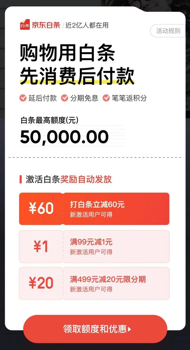 产品升级消息传出后,行业最先关注的是产品的属性发生变化。据介绍,用户将“白条”升级为“白条卡”后,“白条”将从信用付产品变更为信用卡产品。白条卡激活成功后,其后续白条交易将使用白条卡进行支付并结算。白条卡额度会替换白条额度,交易计入白条卡账单。