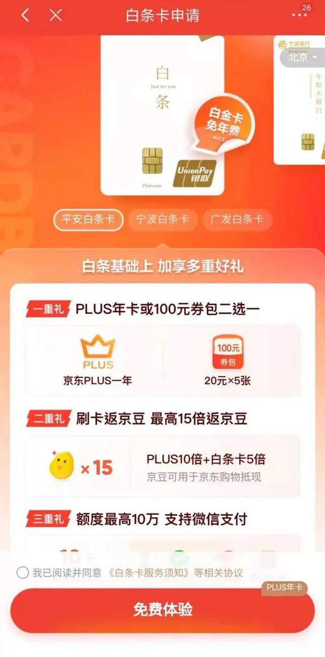 近日“京东白条”传出产品升级的消息,部分用户可将“白条”升级为信用卡产品“白条卡”,由京东白条和合作银行联合为用户推出,目前已公布的银行共有三家,分别是广发银行、宁波银行、平安银行。白条卡激活成功后,其后续白条交易将使用白条卡进行支付并结算。白条卡额度会替换白条额度,交易计入白条卡账单。