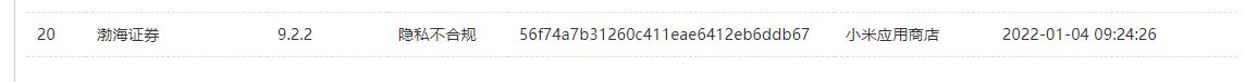 1月4日,根据国家移动互联网应用安全管理中心网站信息显示,《渤海证券》(版本9.2.2,小米应用商店)存在未提供有效的更正、删除个人信息及注销用户账号功能,或注销用户账号设置不合理条件,涉嫌隐私不合规。