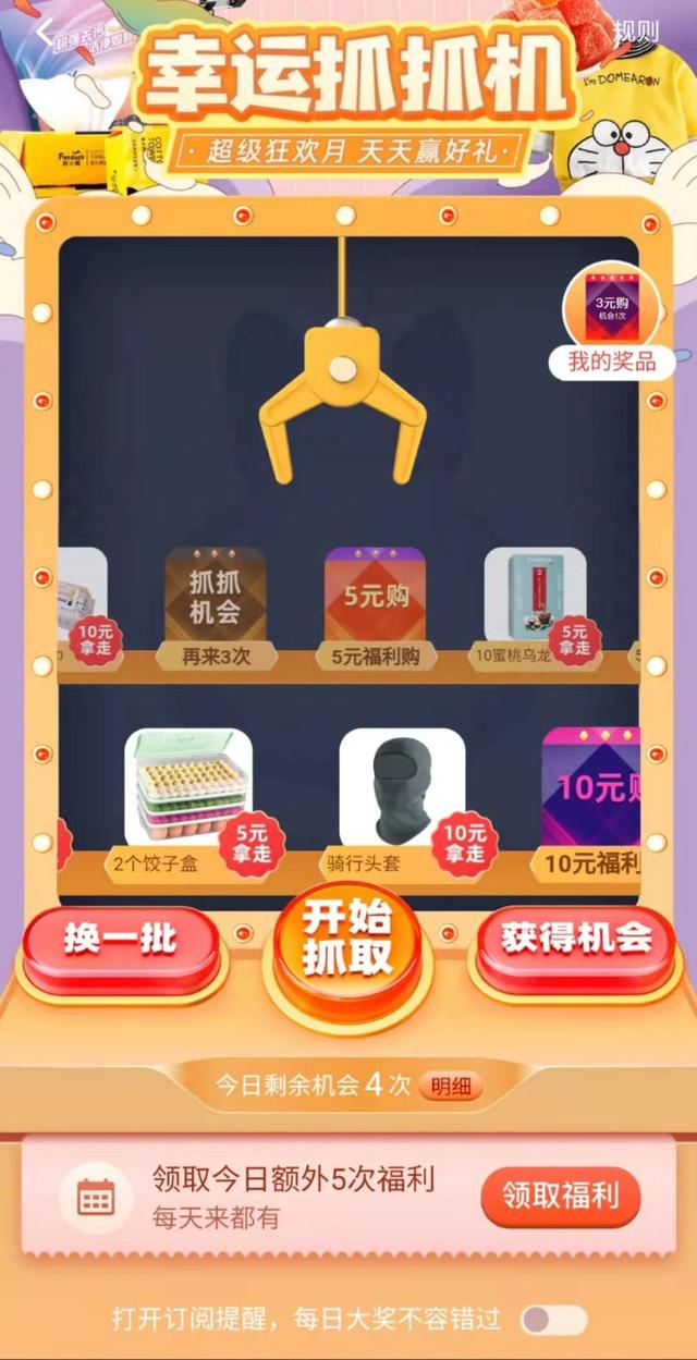 在营销策略上,淘特与拼多多类似,以“灵魂大促+低价走量”为主,辅以“娃娃机”等小游戏进行互动,增添趣味性,诱导下单。