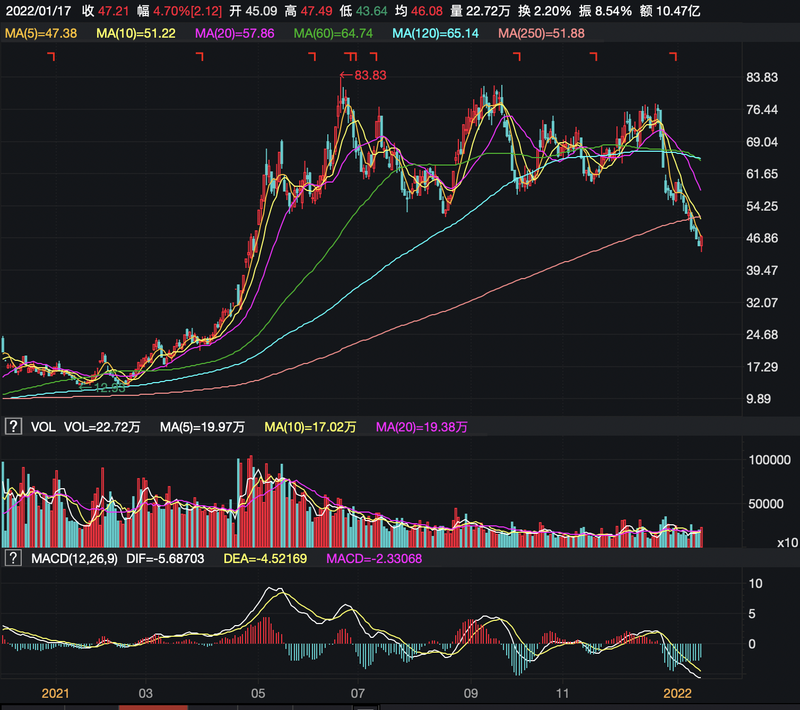 2021年以来,小康股份曾经历巨幅增长及震荡,年内涨幅最高超4倍,并在12月底起持续回落,较52周高点83.83元,小康股份已跌去43%。据万得数据,截至2021年三季度末,小康股份前十大流通股东包括重庆小康控股有限公司、东风汽车公司、民生银行广发行业严选三年混合型证券基金、浦发银行广发小盘成长型混合基金,自然人颜敏等。北汽蓝谷和长安汽车同样股价已大幅下修。