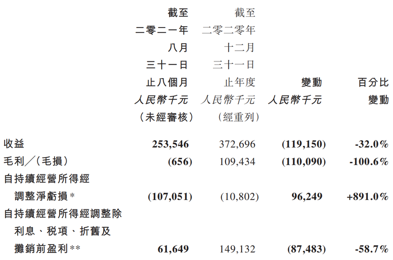 财报显示,因年度报告周期调整,此次公布业绩仅包含截至2021年8月31日止8个月的财务数据。但仅在八个月内,成实外亦录得巨额亏损。