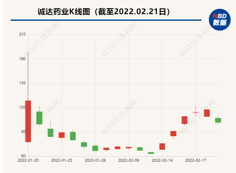 想象空间被打破,2月21日,诚达药业大幅低开,开盘报107元/股,截至发稿前,其股价跌超13%。
