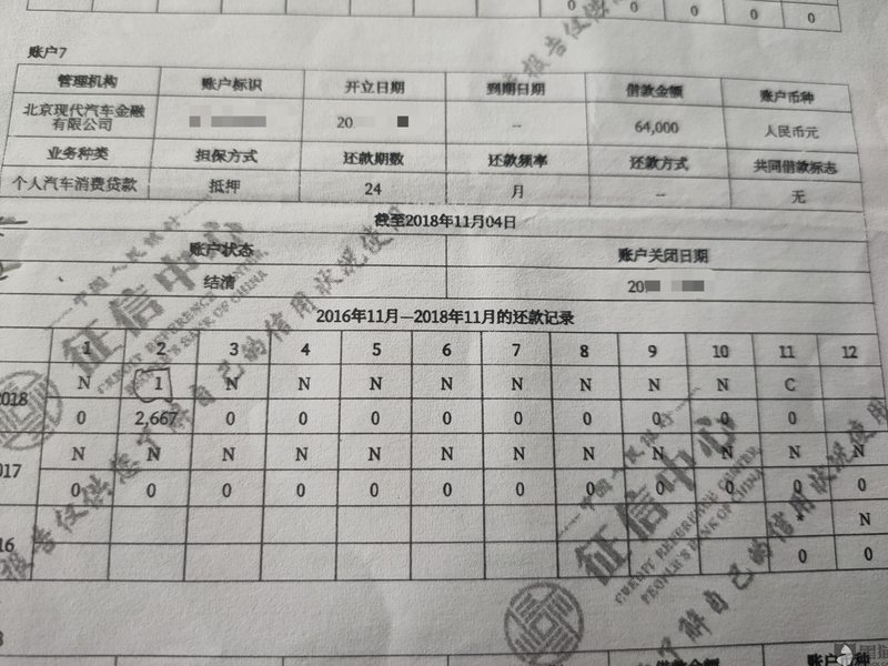在公开投诉平台,有投诉者晒出自己的征信报告,其在北京现代汽车金融的贷款已结清,于2018年2月有1天的逾期记录,金额为2667元。据称其不知情,直到在购房按揭时才发现有逾期记录,未提及是否对房贷申请产生影响,仅表示多次沟通未处理征信记录。此外,亦有投诉者附上到期手动还款的转账明细,称还款后次日收到逾期短信。