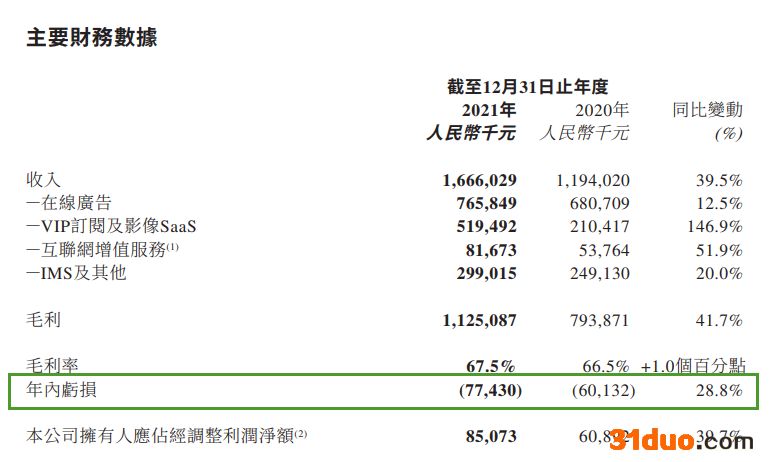 财报显示,截止2021年年底,美图公司的年度亏损增加至7740万元,而截至2020年12月31日止年度亏损则为6010万元。美图公司表示,主要是由于商誉及一间已收购子公司的无形资产减值亏损,抵销了毛利增长的正面影响所致。