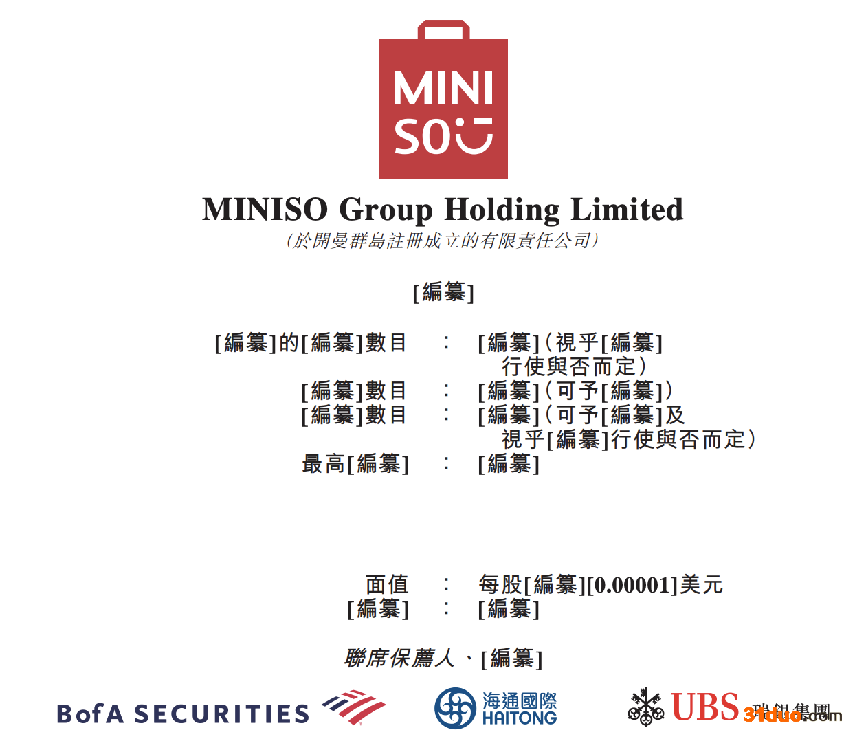 担任公司主承销商的是美银、海通国际和瑞银集团。