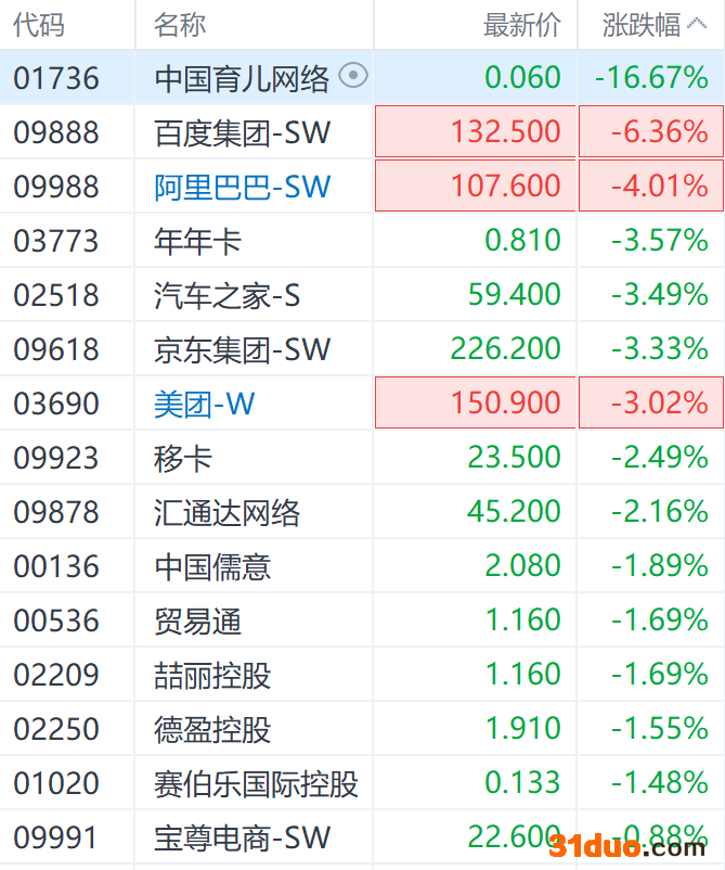 截止发稿,微博上涨2.42%,报194.4港元。而阿里巴巴和美团(03690.HK)分别下跌4.01%和3.02%。