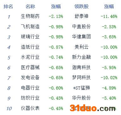 A股市场板块及个股涨跌幅排行