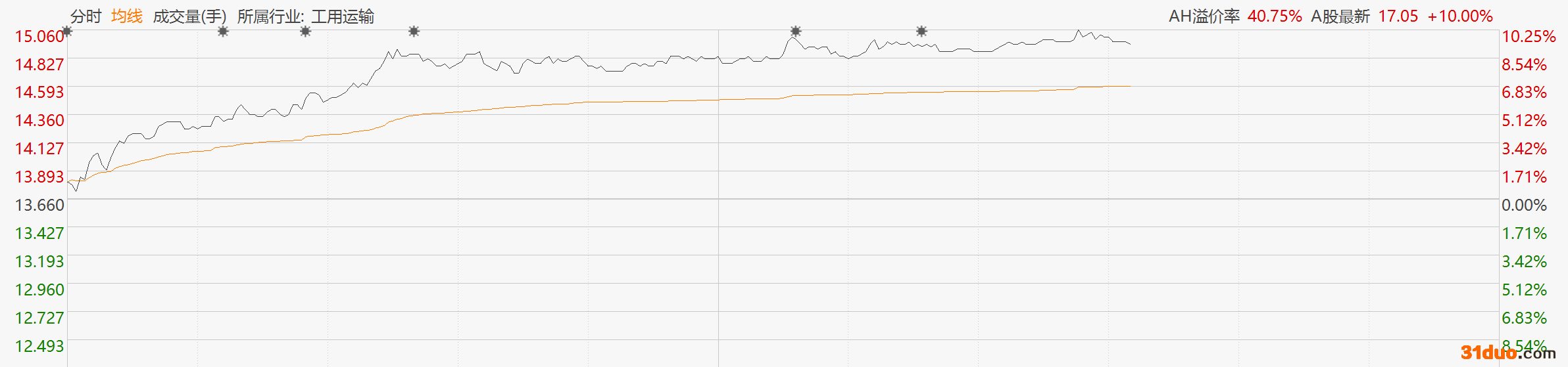 截止发稿,中远海控上涨9.37%,报14.94港元。