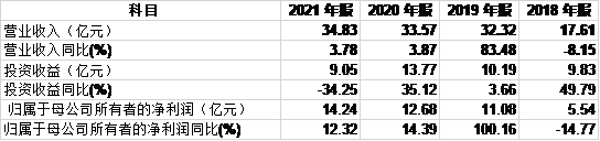表:华安证券2018-2021年营业收入、投资收益情况