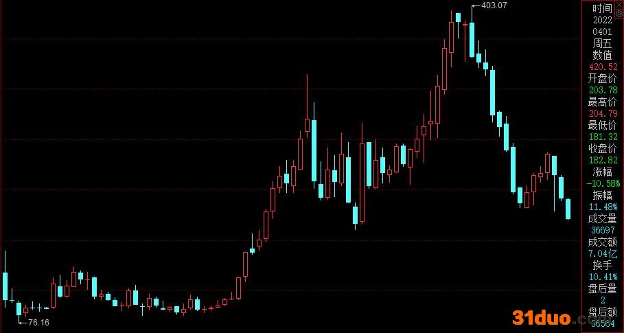 键凯科技于2020年8月26日在科创板上市,发行价格41.18元/股,上市后维持在百元上下波动,2021年4月下旬开始发力,直到涨到年底403.07元的历史高位,随后股价大幅下挫,截至4月1日报收182.82元,一个季度股价“腰斩”,一年时间股价走出了一波“过山车”行情。且在年报业绩公布后,股价仍毫不“给力”,难有起色。